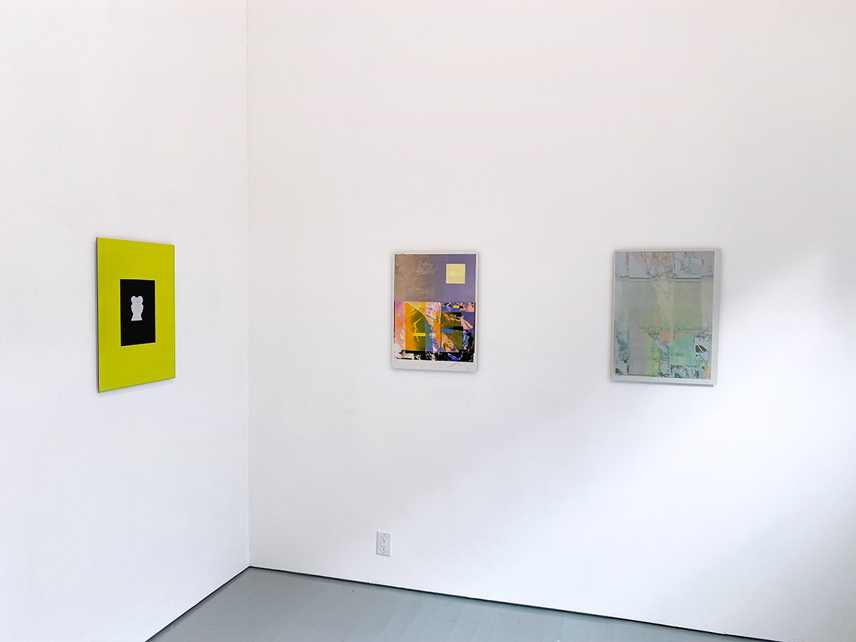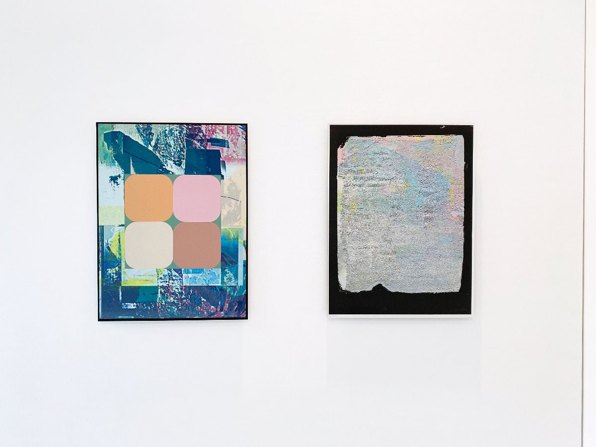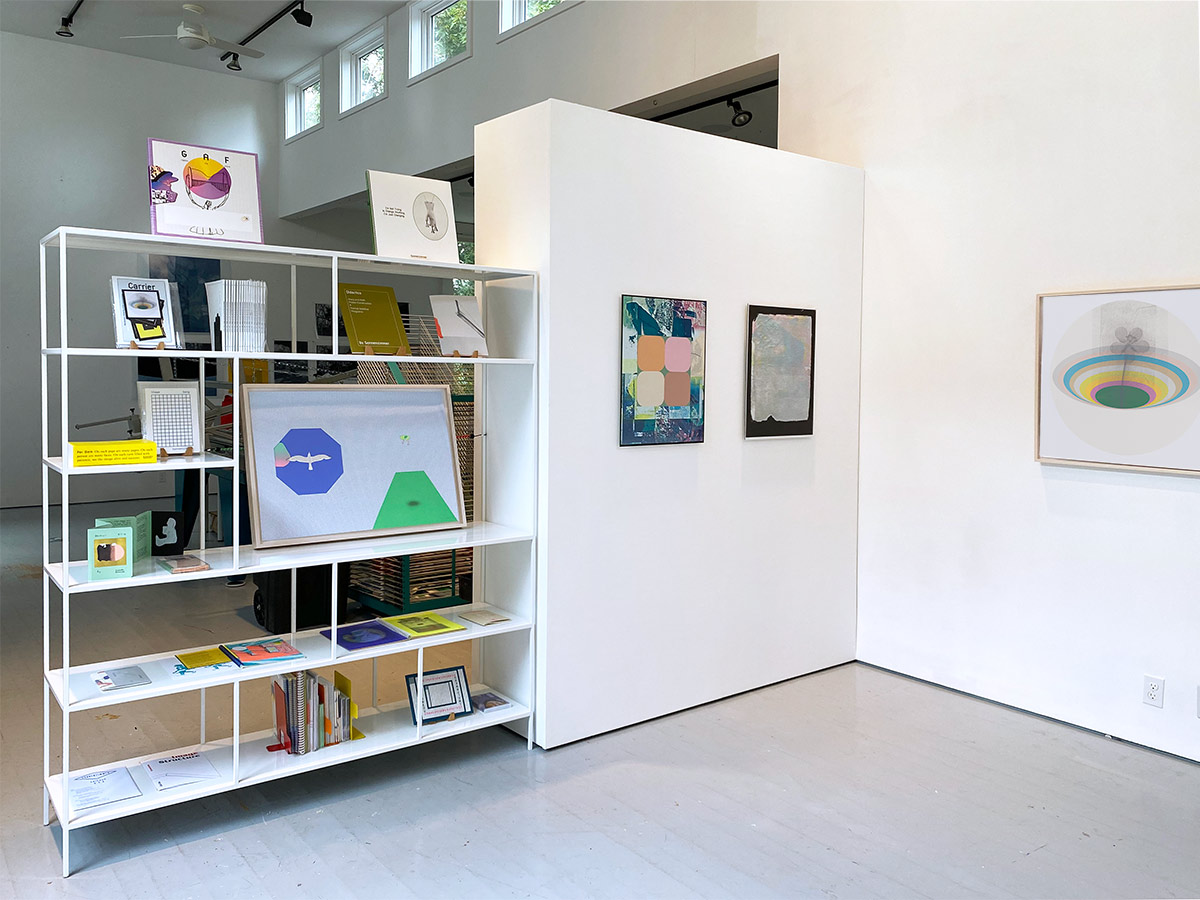 Carrier Shell: Images on/in/of/and the Built Environment is an exhibition featuring several collaborative encounters between the experimental graphic arts studio Sonnenzimmer (Nadine Nakanishi and Nick Butcher) and the artists Nikole Bouchard and Milo Bonacci over the past two years. The artists began an ongoing exchange in 2019 while working together on the anthology Waste Matters: Adaptive Reuse for Productive Landscapes (Routledge, 2021) on which Bouchard served as editor and Sonnenzimmer as publication designers and illustrators. While developing the visual and material aspects of the publication, Sonnenzimmer established and honed an iterative image making process leading to the creation of a series of abstract graphic book plates.